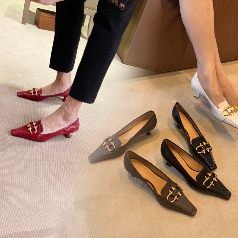 ☆ピンヒールレザーゴールドバックル スタンダードシングル 靴 シューズ レトロ ハイヒール スクウェア ☆★☆ 韓国◆オルチャン◆メッシュ◆ベージュ◆スニーカー◆ヒール◆ビジネス◆サンダル◆アースカラー◆夏◆秋◆冬◆厚底◆ブーツ◆パンプス 11A45820719404
