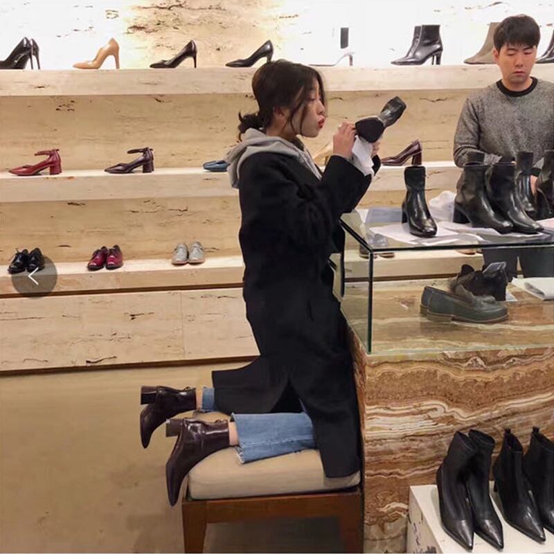 ☆新品スクウェアジッパーベルベットブーツ♡チャンキーヒール マキシ レトロ 靴 シューズ ☆★☆ 韓国◆オルチャン◆メッシュ◆ベージュ◆スニーカー◆ヒール◆ビジネス◆サンダル◆アースカラー◆夏◆秋◆冬◆厚底◆ブーツ◆パンプス 11A50507451023