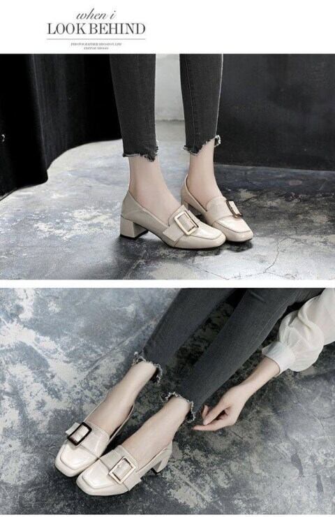 ☆新品モードレザーチャンキーヒール ビジネス シングル 靴 シューズ ☆★☆ 韓国◆オルチャン◆メッシュ◆ベージュ◆スニーカー◆ヒール◆ビジネス◆サンダル◆アースカラー◆夏◆秋◆冬◆厚底◆ブーツ◆パンプス 11B95358465113