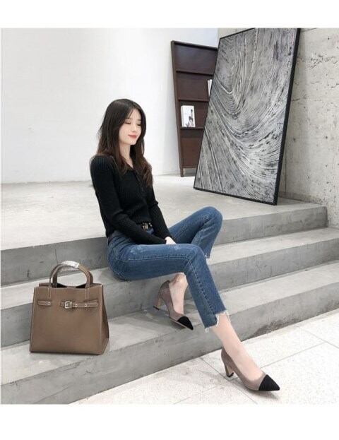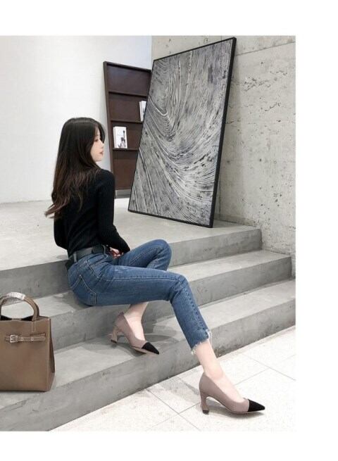 ☆★☆ 新品 スウェードヒールシングル大人女子☆ 靴 シューズ ハイヒール ステッチ ☆★☆ 韓国◆オルチャン◆メッシュ◆ベージュ◆スニーカー◆ヒール◆ビジネス◆サンダル◆アースカラー◆夏◆秋◆冬◆厚底◆ブーツ◆パンプス 11B47737096759