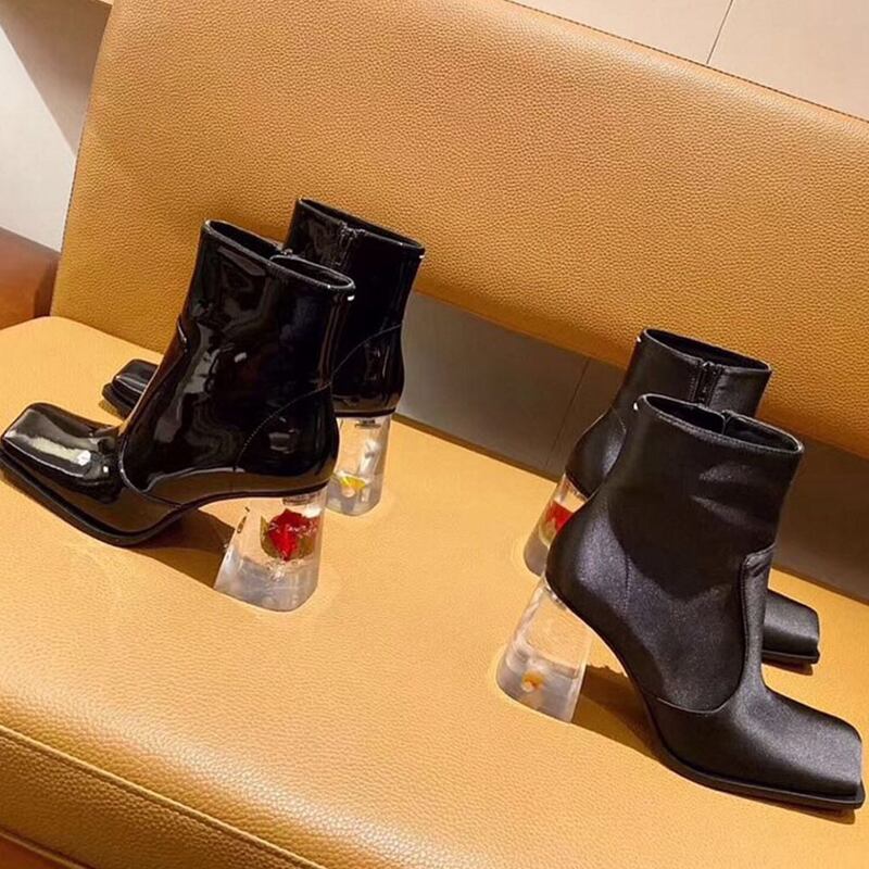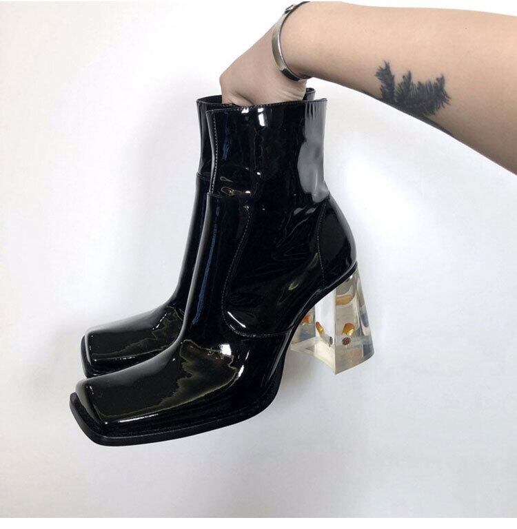 ★ クリスタルブーツ大人女子☆ウィンターレザーサイドジッパー ハイヒール 靴 シューズ 冬物 スクウェア ☆★☆ 韓国◆オルチャン◆メッシュ◆ベージュ◆スニーカー◆ヒール◆ビジネス◆サンダル◆アースカラー◆夏◆秋◆冬◆厚底◆ブーツ◆パンプス 11A29070150671