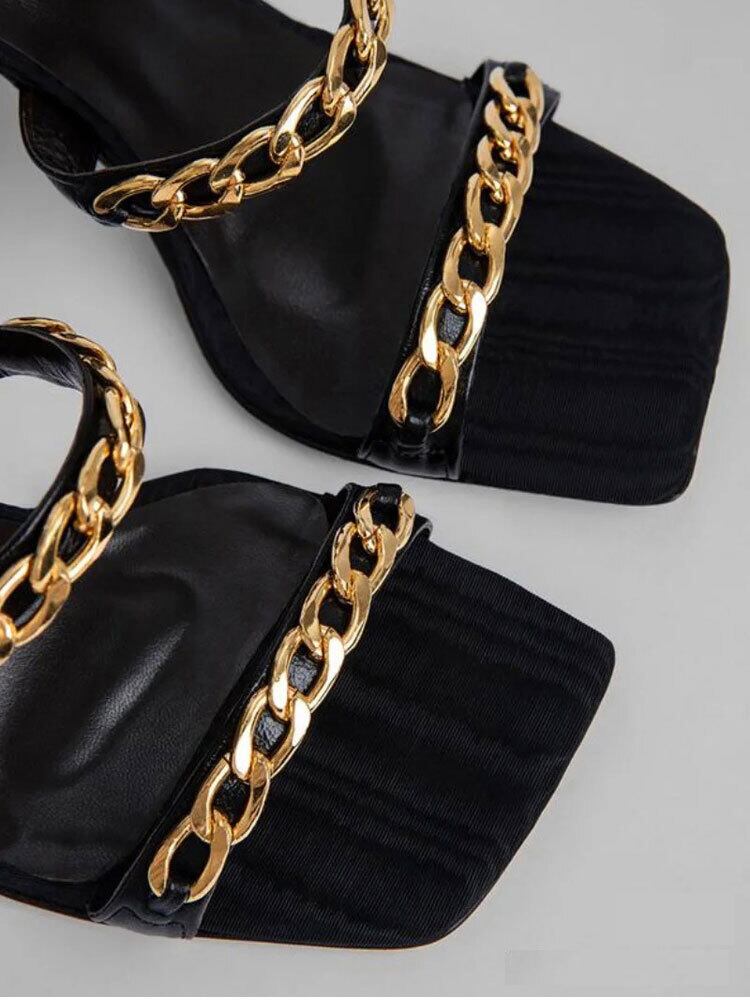 ✪☆ メタルチェーン サンダルベルト ブラックヒールサマー ハイヒール 靴 シューズ 夏物 ハーネス ヨーロピアン ✪☆ZARA フォーエバー21 GAP H&M WEGO HONEYS MUJI GU UNIQLO dholic babyGAP FOREVER21 Old Navy 春夏秋冬 韓国 K-POP Kpop 中華アイドル 韓国アイドル 韓流スター Cpop C-pop 11A34068004181