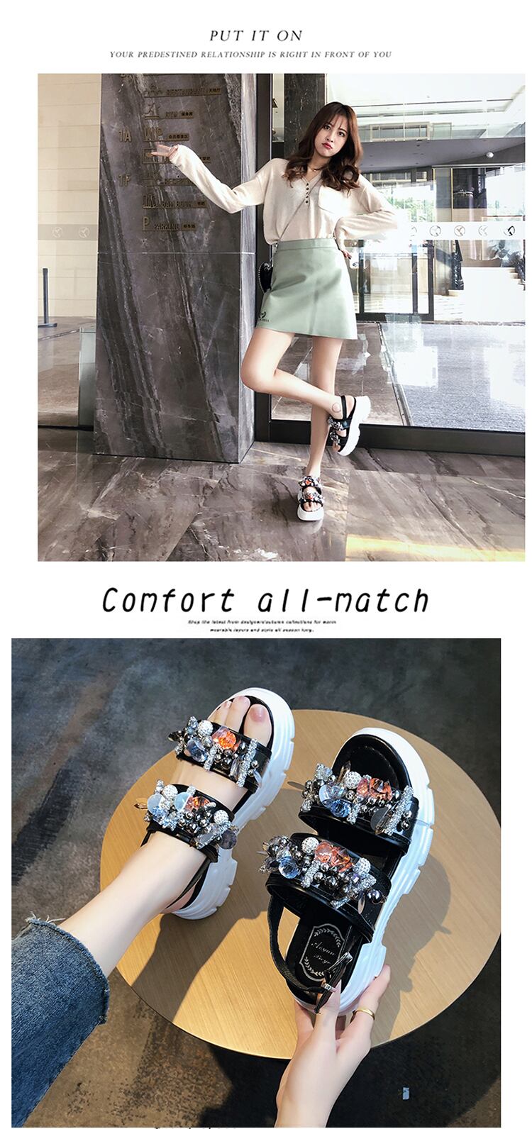 ✪☆ ラインストーンサンダルサマーボヘミアン 靴 シューズ 夏物 ビーチ ✪☆ZARA フォーエバー21 GAP H&M WEGO HONEYS MUJI GU UNIQLO dholic babyGAP FOREVER21 Old Navy 春夏秋冬 韓国 K-POP Kpop 中華アイドル 韓国アイドル 韓流スター Cpop C-pop 11B74363428232