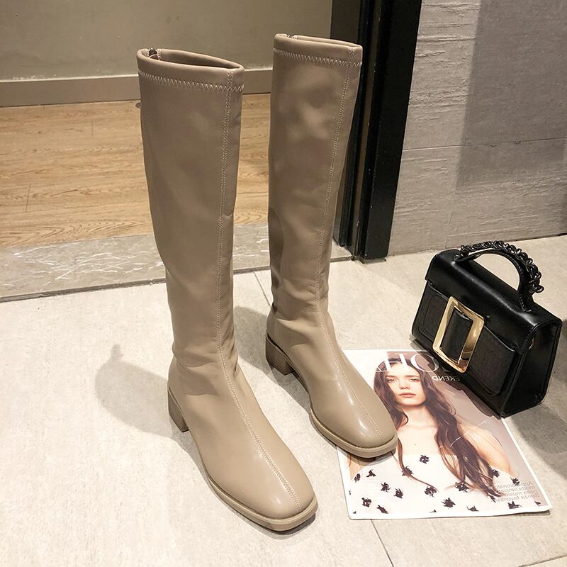 ✪☆ レザーブーツレディースウィンターベルベット 靴 シューズ 冬物 スクウェア ✪☆ZARA フォーエバー21 GAP H&M WEGO HONEYS MUJI GU UNIQLO dholic babyGAP FOREVER21 Old Navy 春夏秋冬 韓国 K-POP Kpop 中華アイドル 韓国アイドル 韓流スター Cpop C-pop 11B78030442295